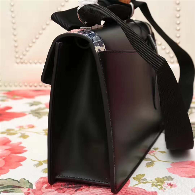 - 结构:羊皮内里,黑色真皮,配以蛇皮滚边,拉链内袋和智能手机袋,竹节顶部提手,配两条肩带:可拆分和可调节罗缎肩带和真皮肩带