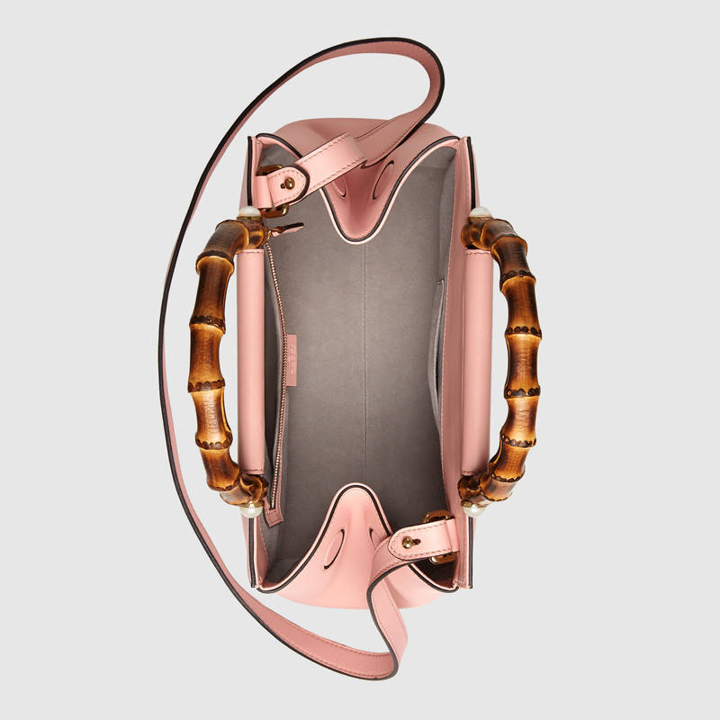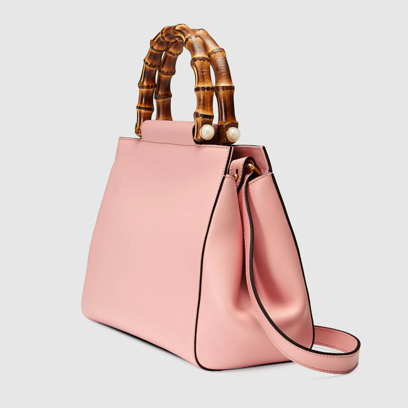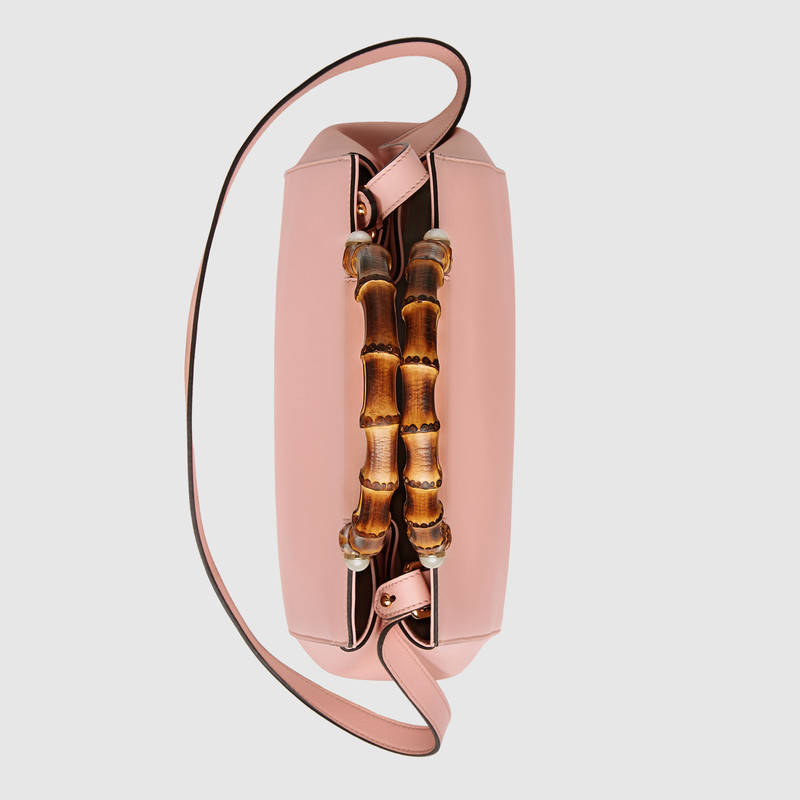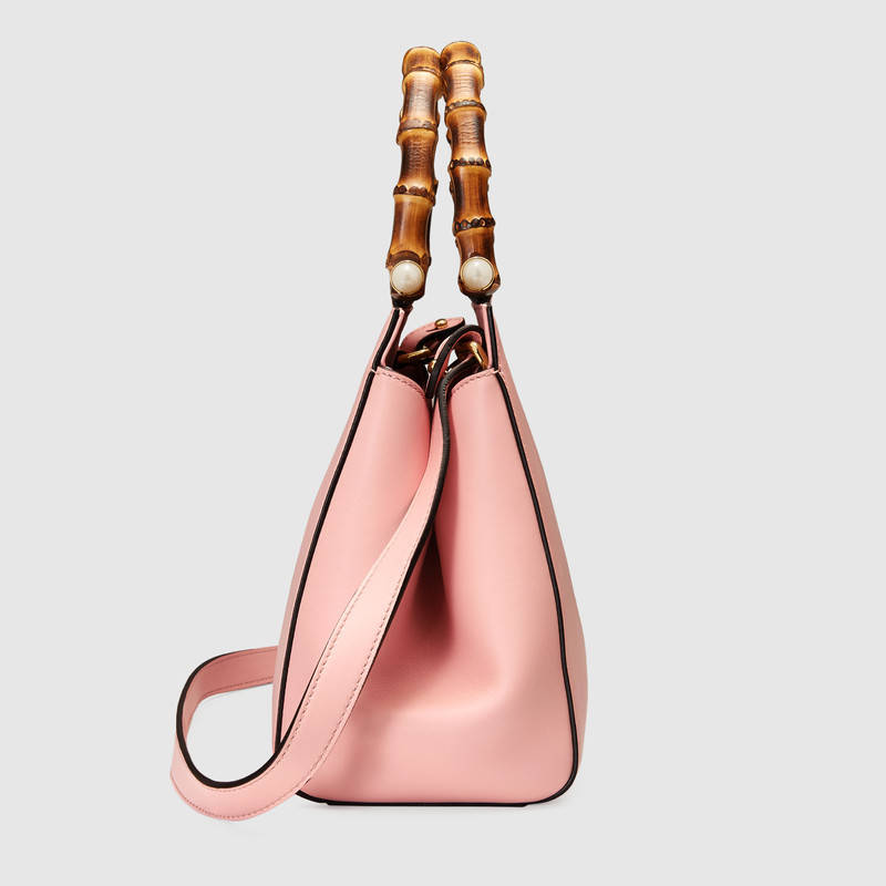 - 453767 Gucci Nymphaea 系列 皮革肩带 竹节提手 手提包 浅粉色