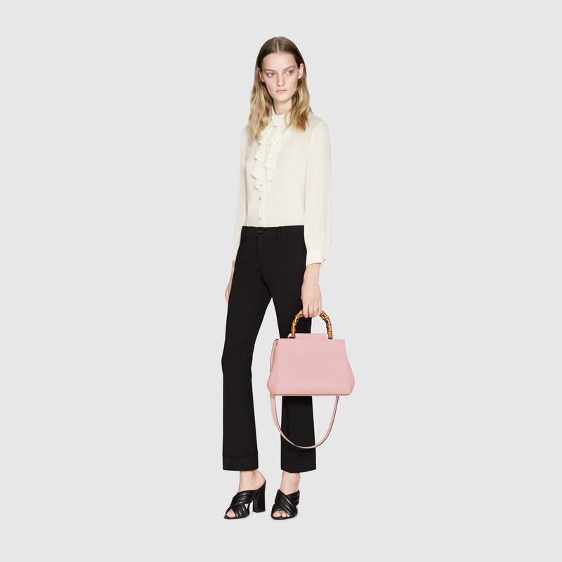 453767 Gucci Nymphaea 系列 皮革肩带 竹节提手 手提包 浅粉色
