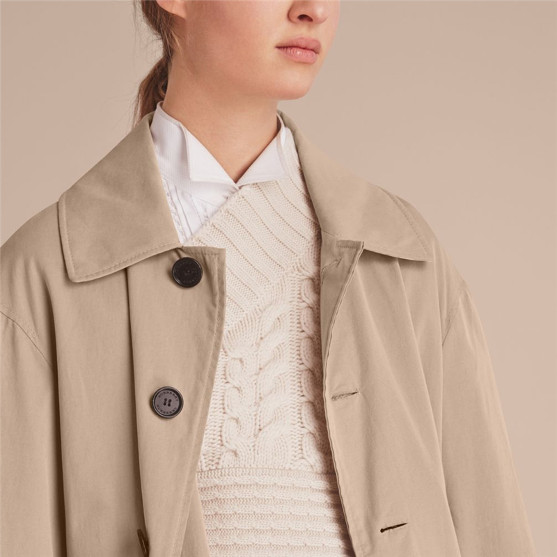 - 45459671 巴宝莉 超大袖口 男女同款 轻薄嘎巴甸 长款轻便大衣 浅灰褐色