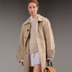 45459671 巴宝莉 超大袖口 男女同款 轻薄嘎巴甸 长款轻便大衣 浅灰褐色