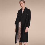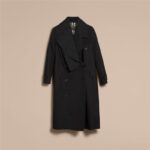 45465051 Burberry巴宝莉 弧形前襟 棉质嘎巴甸 女士长款 风衣 黑色