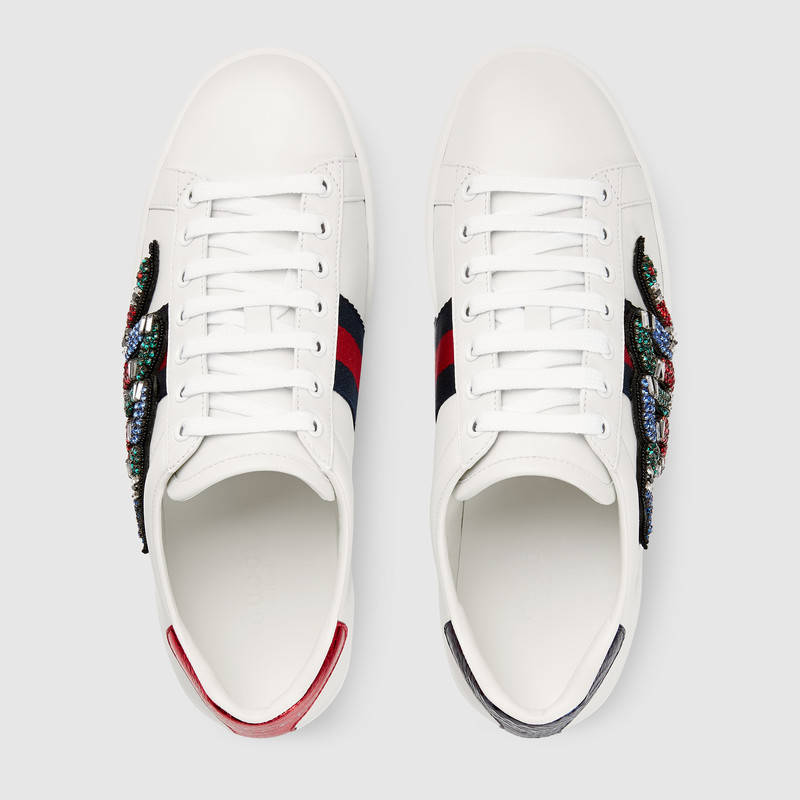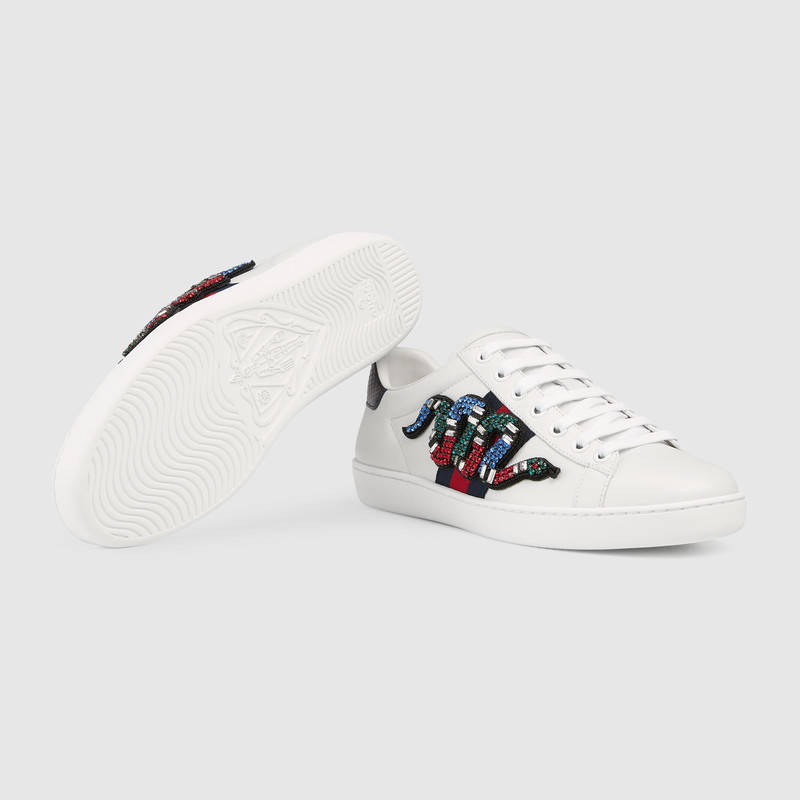 460203 Ace系列 水晶蛇形贴花刺绣 红蓝织带 运动鞋 白色
