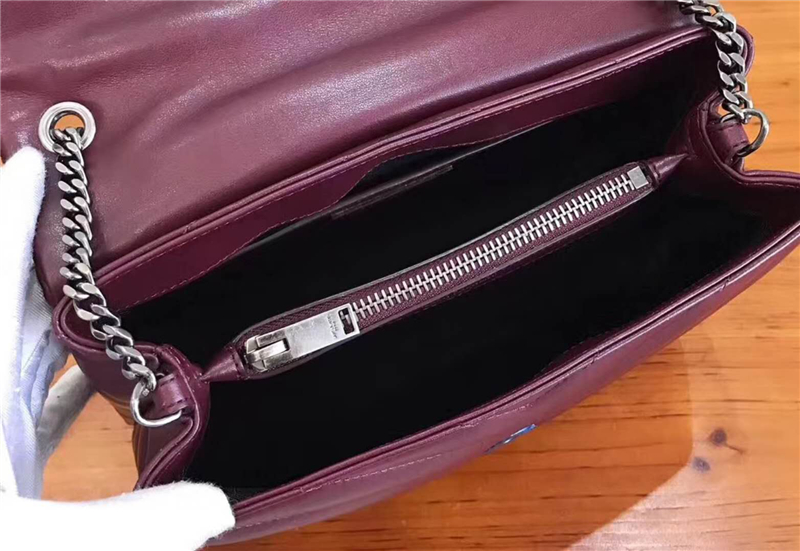 - 464676 YSL圣罗兰 MONOGRAM 经典信封包 前翻盖 链条包 枣红色