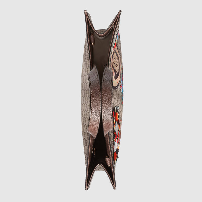 - 详细介绍:Gucci Courrier系列GG Supreme高级柔软人造帆布购物袋,柔软GG Supreme高级人造帆布,覆面超细纤维面料制作,配以棕色真皮滚边。旅行始终是Alessandro Michele的灵感源泉之一。带有GG图案的系列包袋精致装饰多种时尚刺绣和复古风格细节,其中包括航空邮件式滚边和取自经典设计的复古Gucci标志。每个贴花都单独刺绣,随后由专业工匠精心手工贴制。此流程可确保为每件贴花赋予独特外观,各不相同。