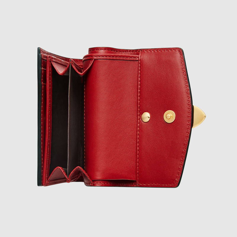 476081 GUCCI Sylvie 系列 皮革 蓝红尼龙织带拼皮 三折皮夹 芙蓉红