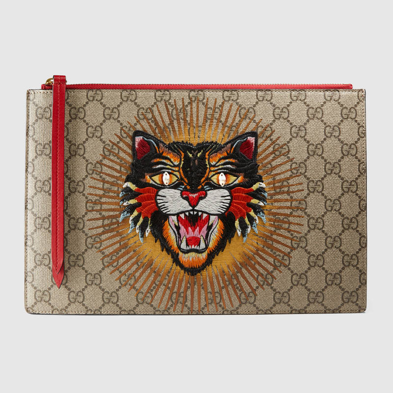 - 详细介绍:GG图案在每一季中均与全新印花和图案精心搭配。Gucci在早秋系列中引入气场猫图案,贯穿男女系列。手拿包采用GG Supreme高级人造帆布精心打造,可分解材料,中央装饰精美图案,独特印制打造三维立体效果。