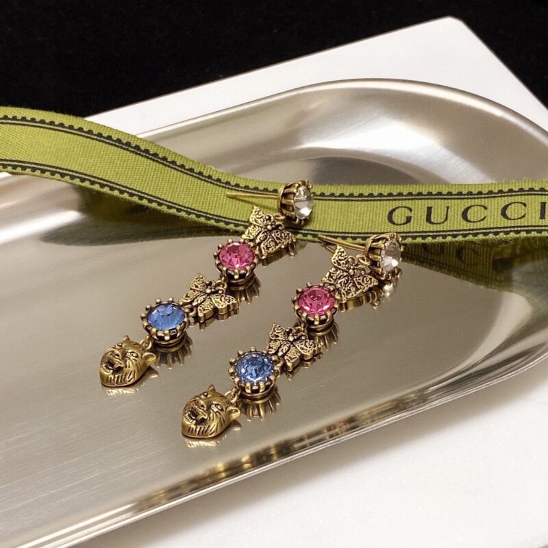 - 结构:椭圆形Gucci皮革标签,配以虎头图案,按扣,4个卡片隔层,1个拉链隔层
