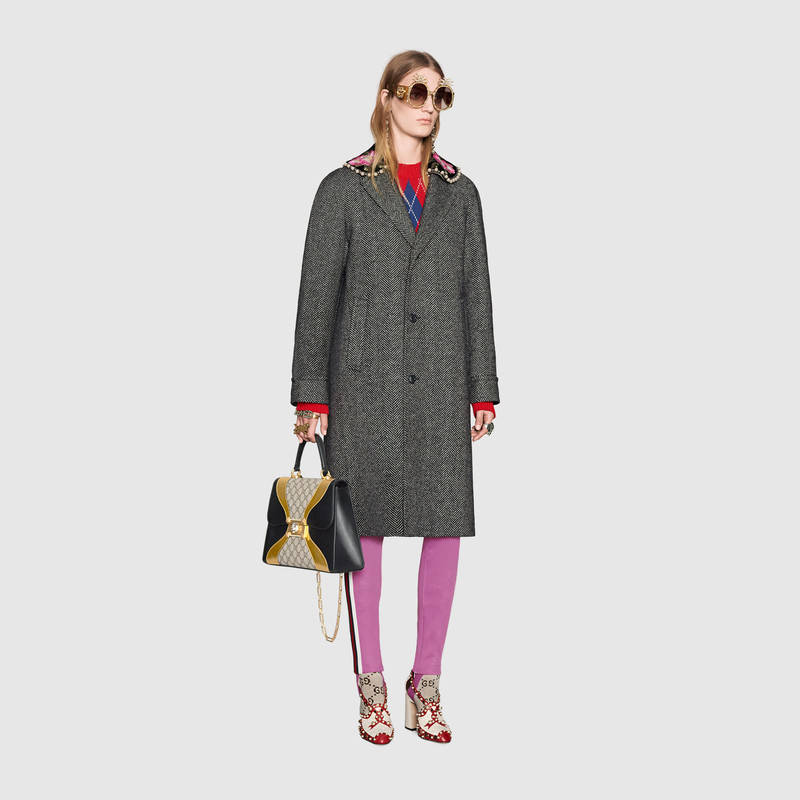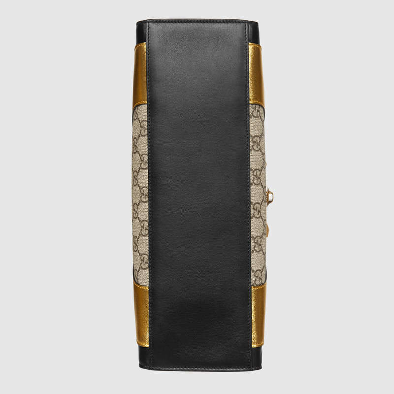 - 详细介绍:中号手提袋采用金属材质档案袋锁扣,装饰珐琅虎头并镶嵌红色水晶眼睛。虎头已成为品牌颇具辨识度的设计标识。GG Supreme高级帆布材质由超细纤维并附双G图案涂层精心打造。抽象的设计融入柔软皮质搭配金色金属光泽皮质。