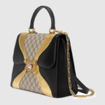476435 GUCCI GG Supreme高级人造帆布和皮革 手提包 黑配金