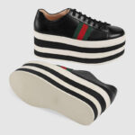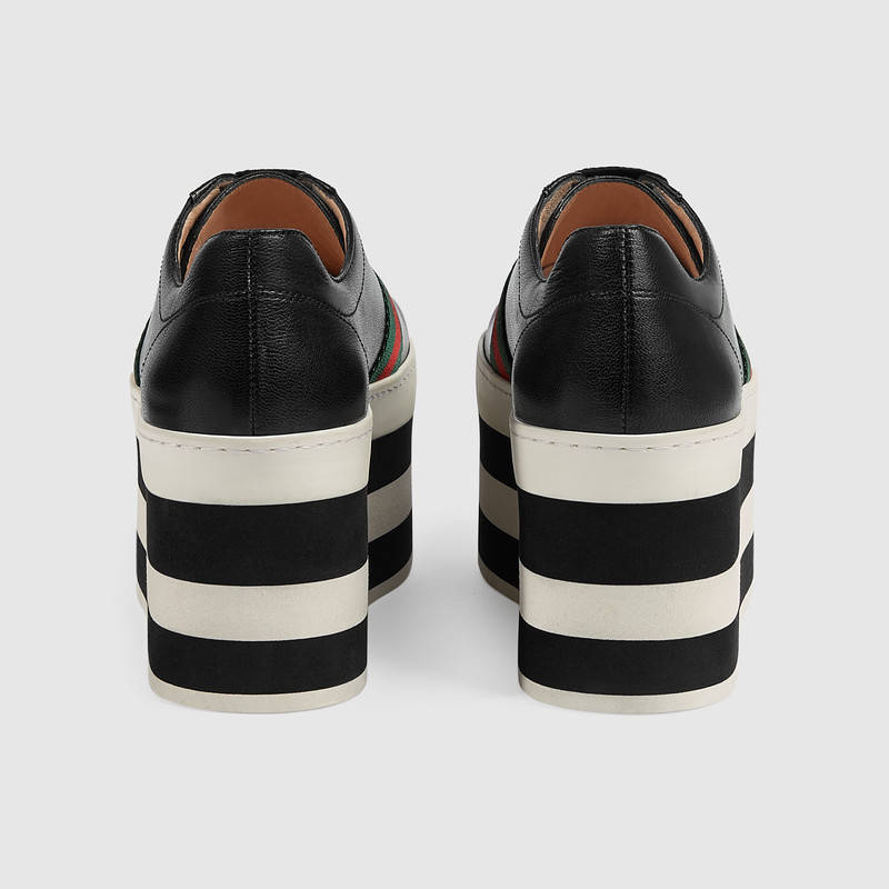 476783 GUCCI 黑白色条纹防水台 罗缎织带 皮革 运动鞋 黑色