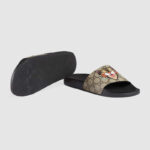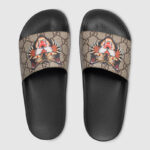 481155 GUCCI 气场猫印花 GG Supreme高级人造帆布 拖鞋 乌木色