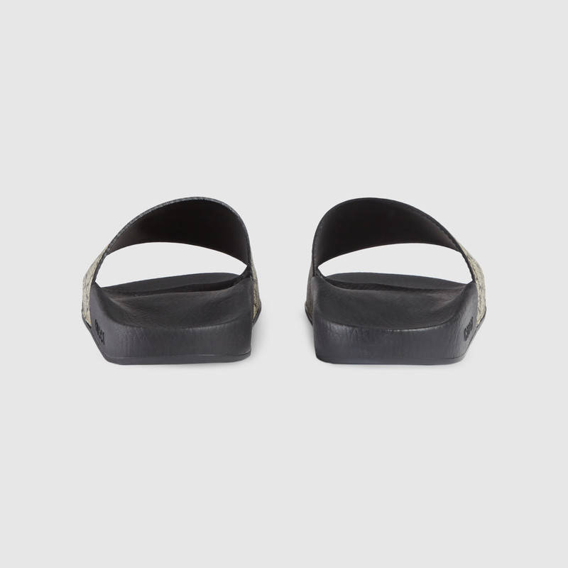 - 481155 GUCCI 气场猫印花 GG Supreme高级人造帆布 拖鞋 乌木色