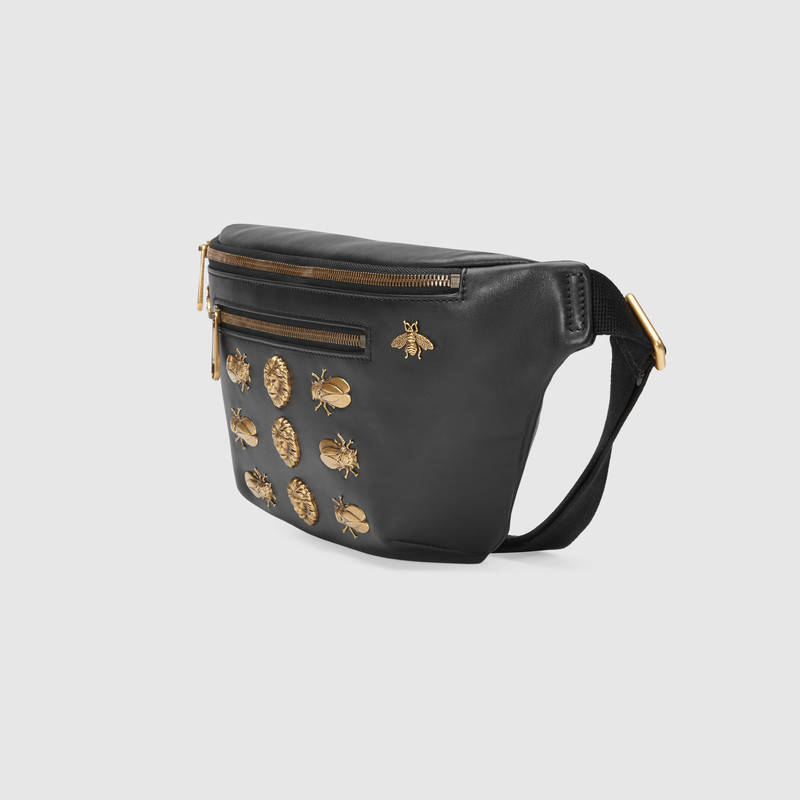 - 484683 GUCCI 古驰 动物造型 金属铆钉 真皮腰包 黑色