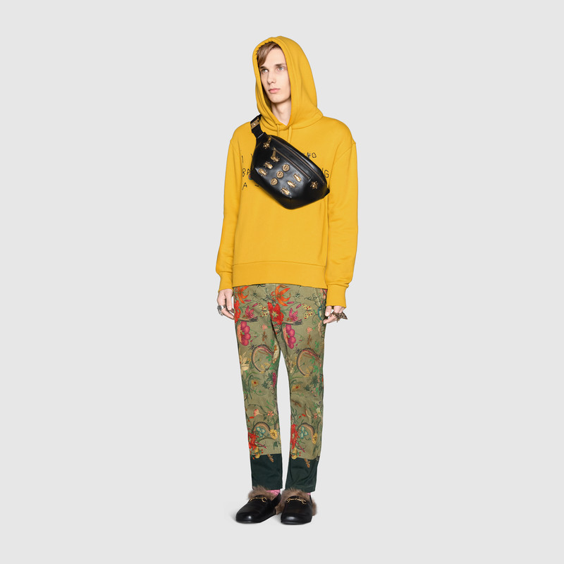 - 详细介绍:GUCCI动物造型铆钉真皮腰包,采用柔软真皮设计,造型结构柔软。包面饰以金属动物造型铆钉,金属蝉、蜜蜂和狮头在腰包上精彩呈现。在炼金师的秘境中动物繁盛兴旺,这一标志和符号的神秘源泉对2017秋冬系列影响至深。