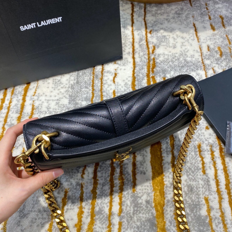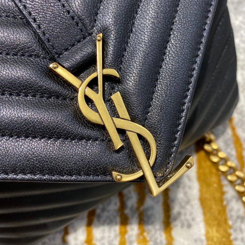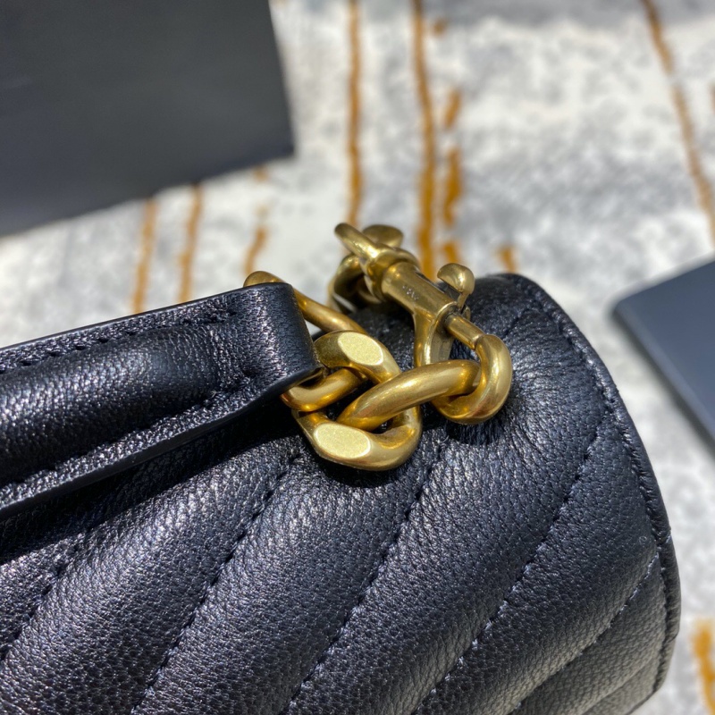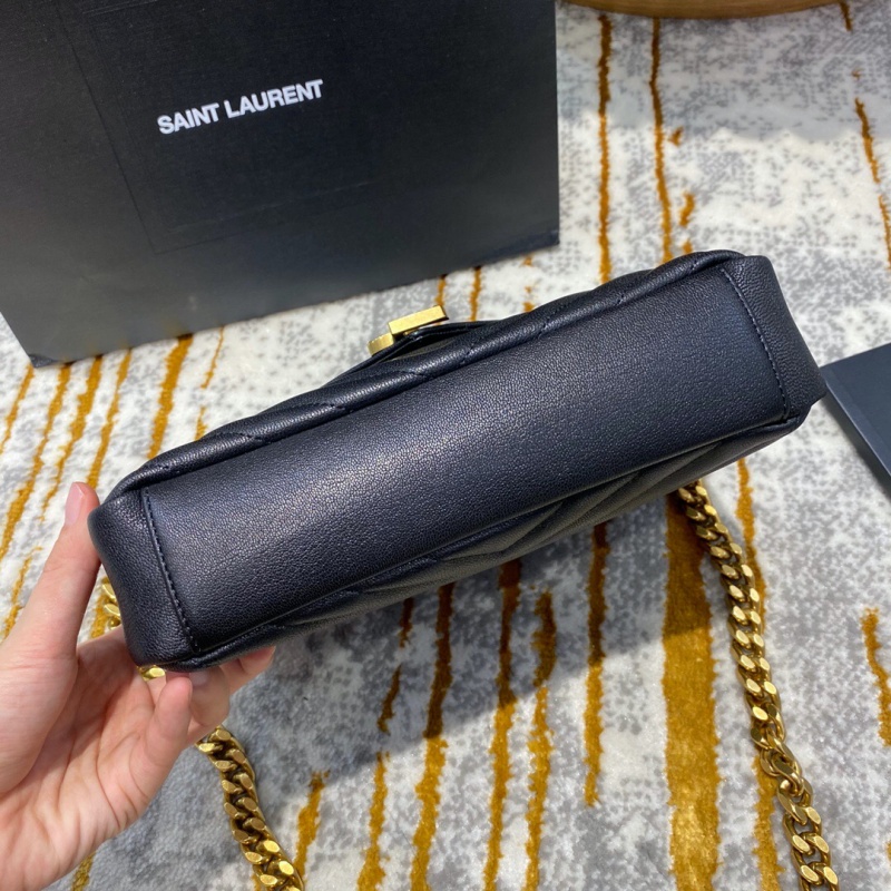 - 487213 YSL圣罗兰经典中号monogram黑色小羊真皮链条包 黑色金扣