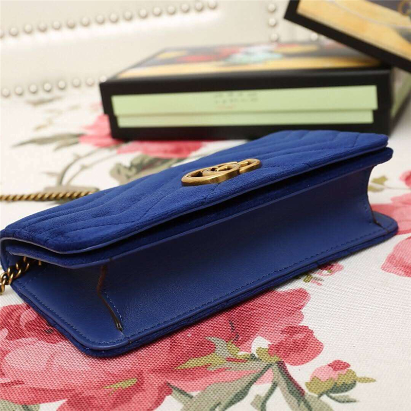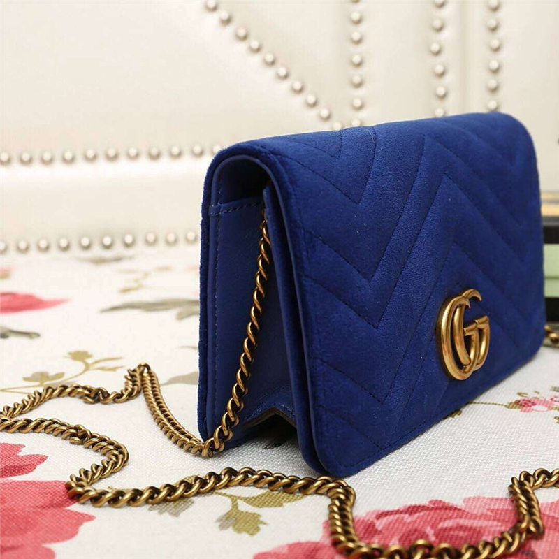 - 488426 Gucci女包 GG Marmont系列 天鹅绒 古驰链条包 Gucci斜挎包 宝蓝色