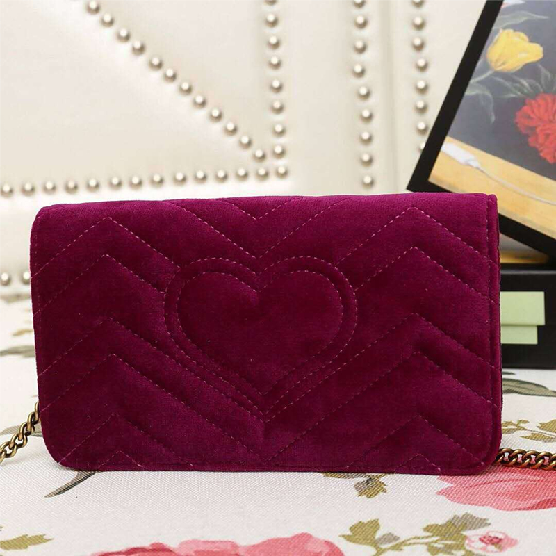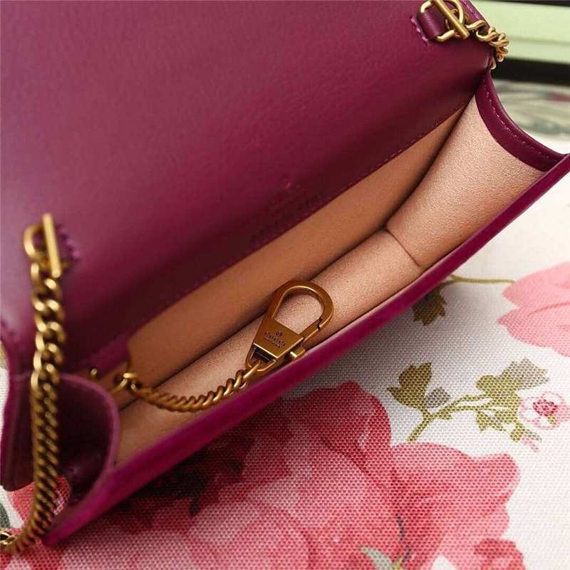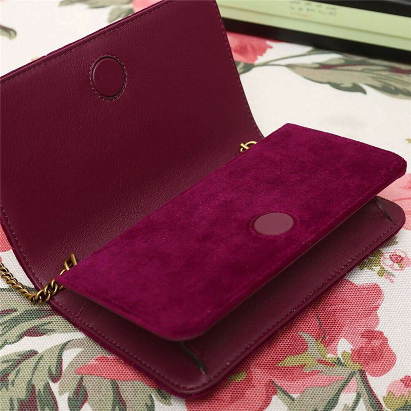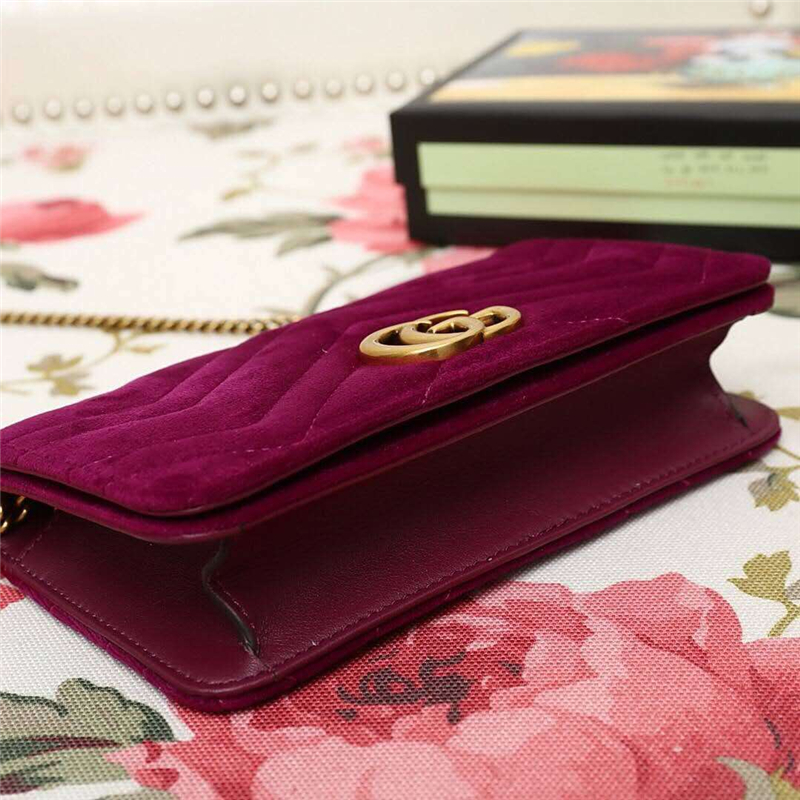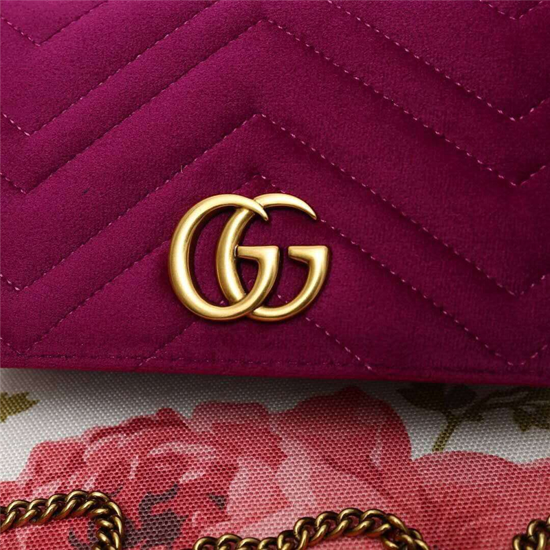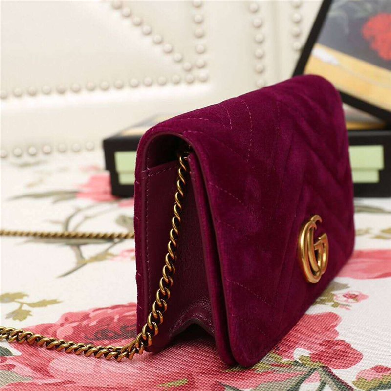 - 488426 Gucci女包 GG Marmont系列 天鹅绒 古驰链条包 Gucci斜挎包 酒红色
