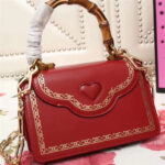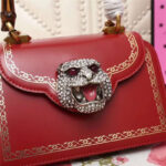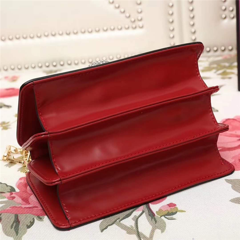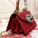 - 488667 Gucci 翻盖 豹头镶钻 竹节提手 链条手提风琴包 红色