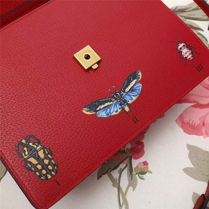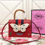 488691 Gucci 2017秋冬走秀款 竹节提手 蝴蝶配饰 手提单肩包 红色