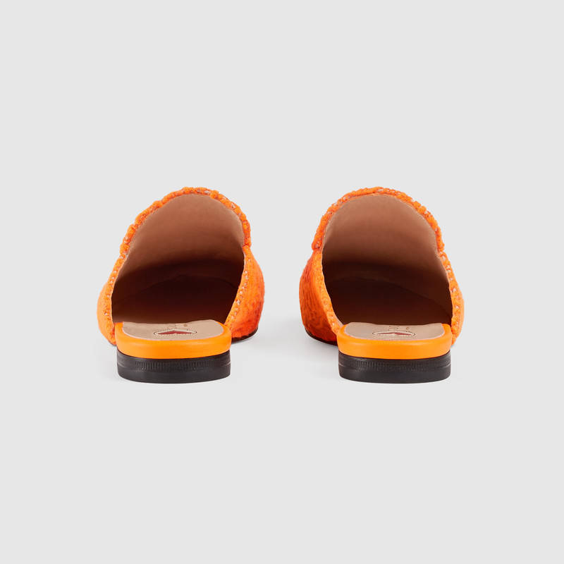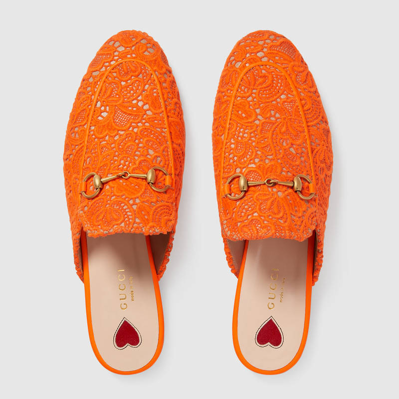 493958 GUCCI Princetown系列 马衔扣 蕾丝拖鞋 荧光橙