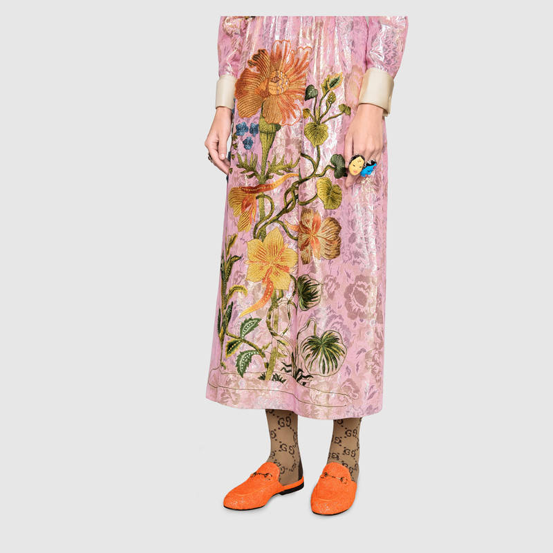 - 详细介绍:Princetown系列便鞋在米色皮革上装饰花卉蕾丝,配以Gucci标志性的金色调马衔扣。内底嵌入皮革心形造型平添精致质感。