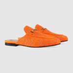 - 493958 GUCCI Princetown系列 马衔扣 蕾丝拖鞋 荧光橙