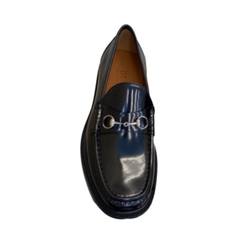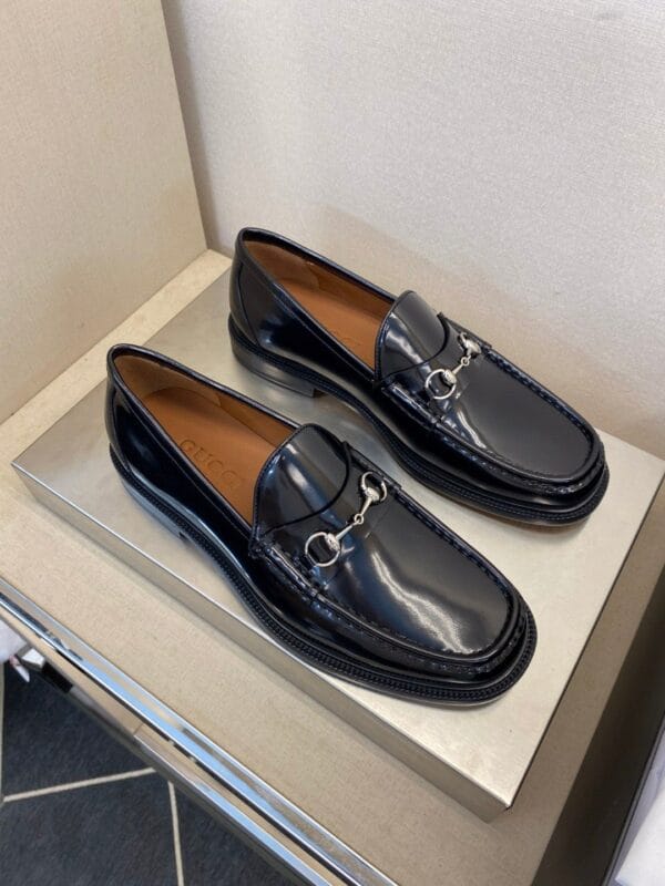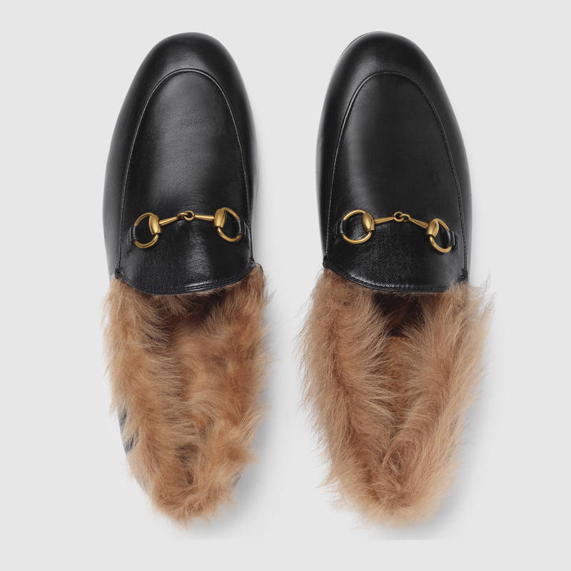 - 496626 Gucci Jordaan 毛皮 马衔扣 低跟乐福鞋 黑色