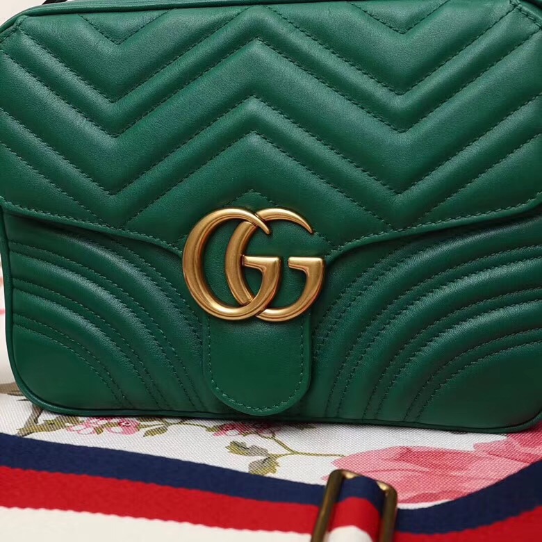 - 498100 Gucci GG Marmont系列 绗缝 翻盖 肩背包 绿色