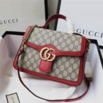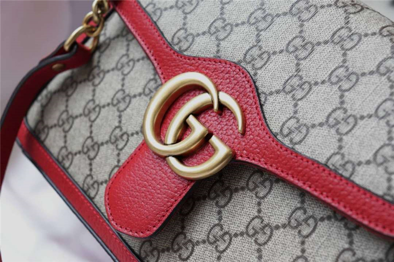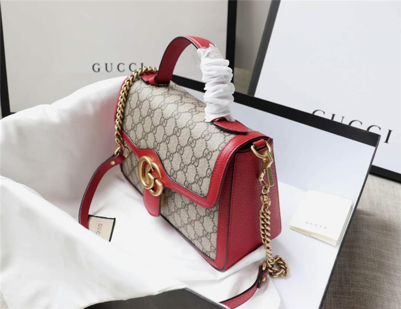 - 498110 Gucci女包 猪纹皮 双GG扣式 古驰包袋 翻盖手提肩包 红色