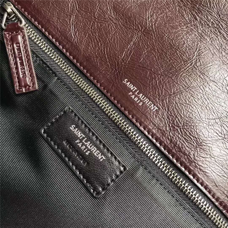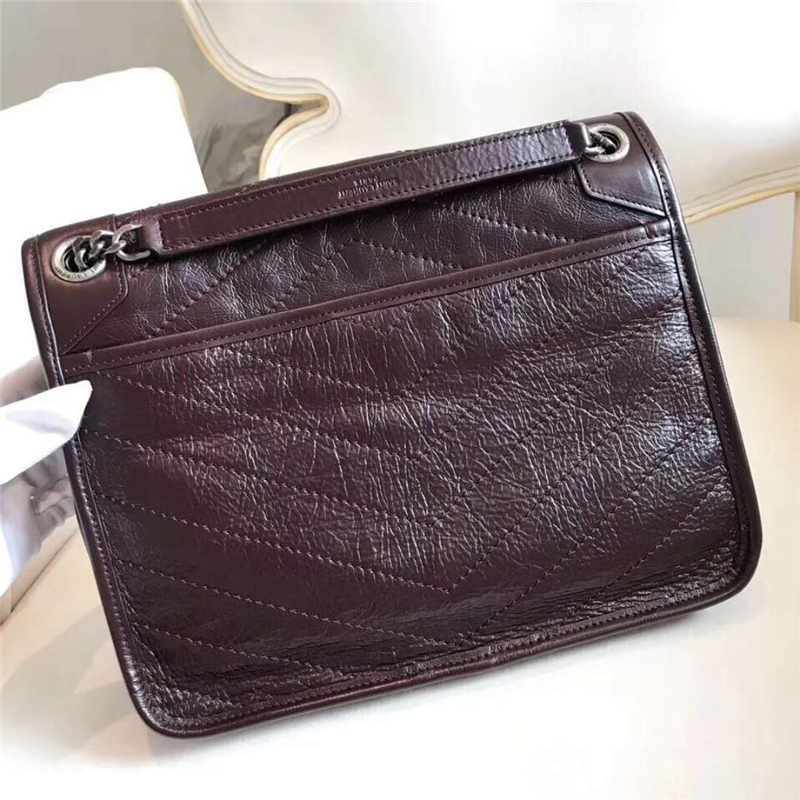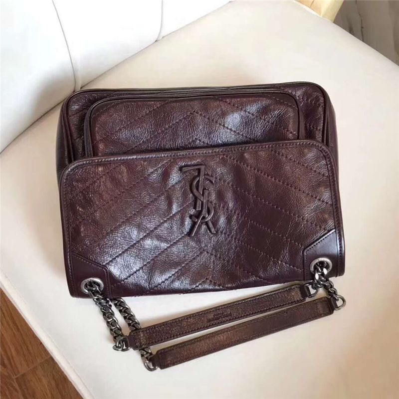 - 498894 YSL圣罗兰 NIKI复古 旧油蜡牛皮 褶皱 链条包 枣红色