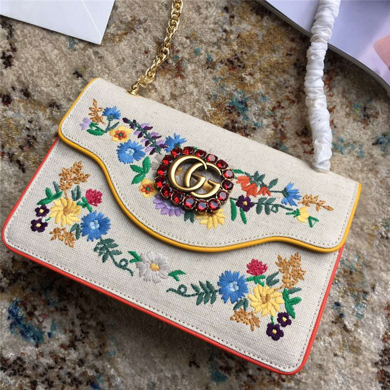 - 详细介绍:源自G家Garden的缤纷花朵精心刺绣装饰,双G配件和熠熠生辉的水晶滚边,包的背面刺绣Mystic Cat(神秘猫)