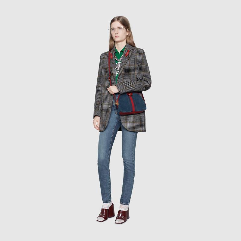 499621 GUCCI GG双拉链 拼皮绒面 织带 贝壳包 蓝色