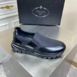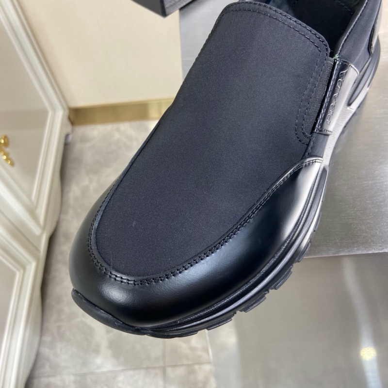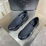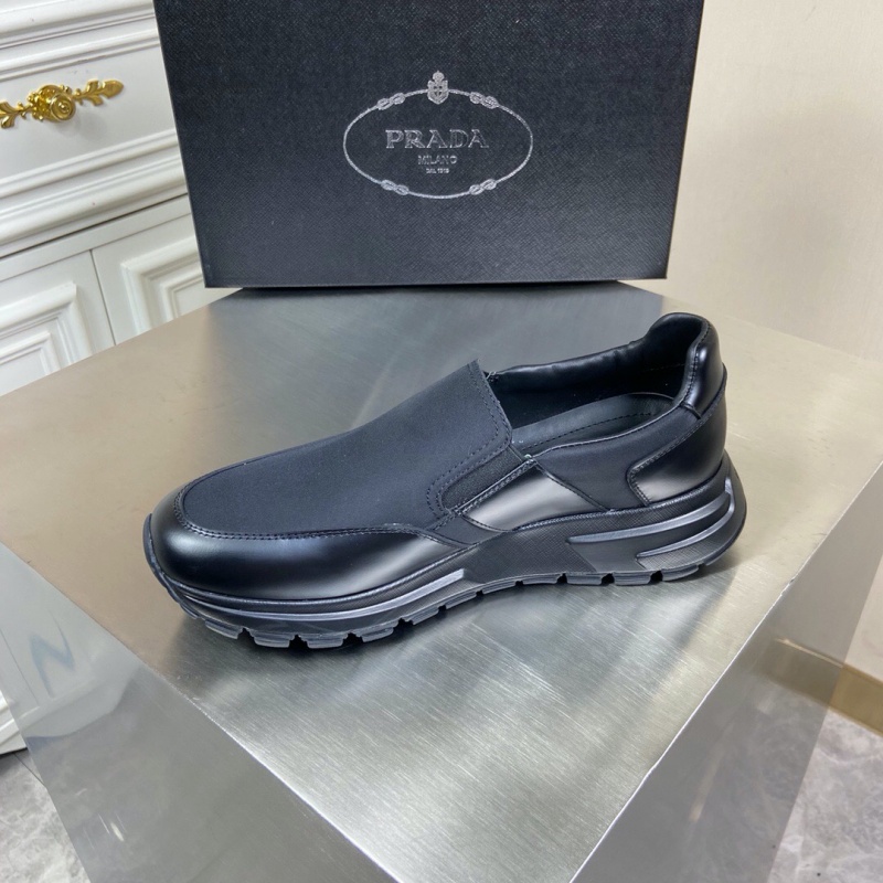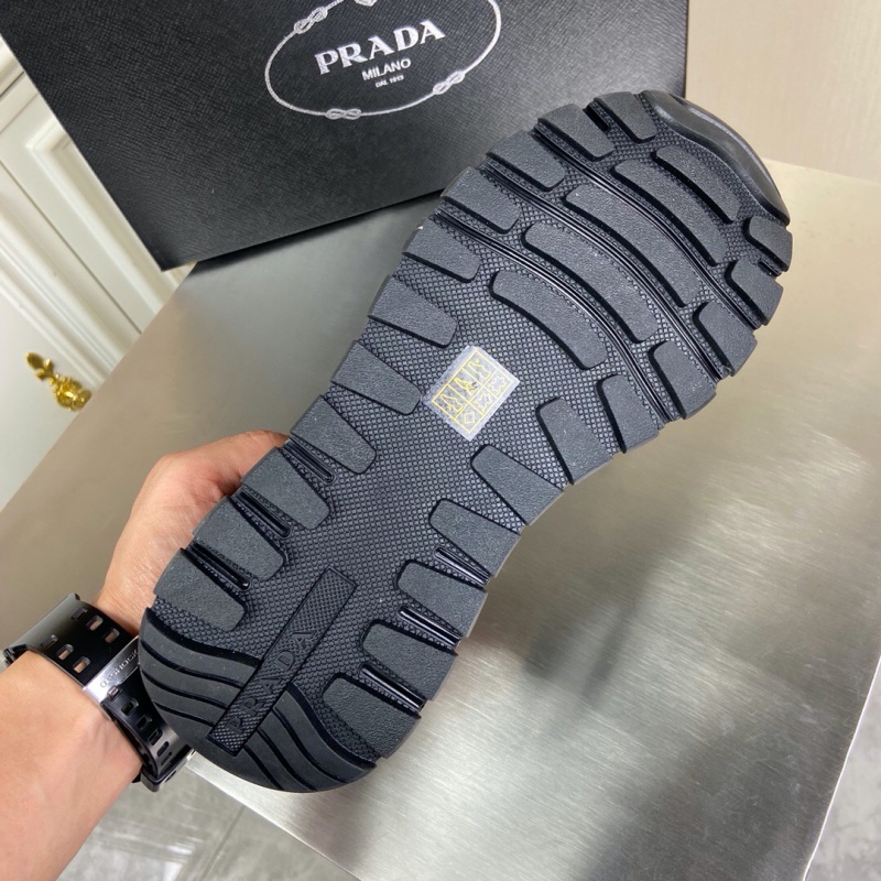 - 4D3480 Prada华达呢和亮面皮革运动鞋 普拉达2020休闲运动鞋 黑色