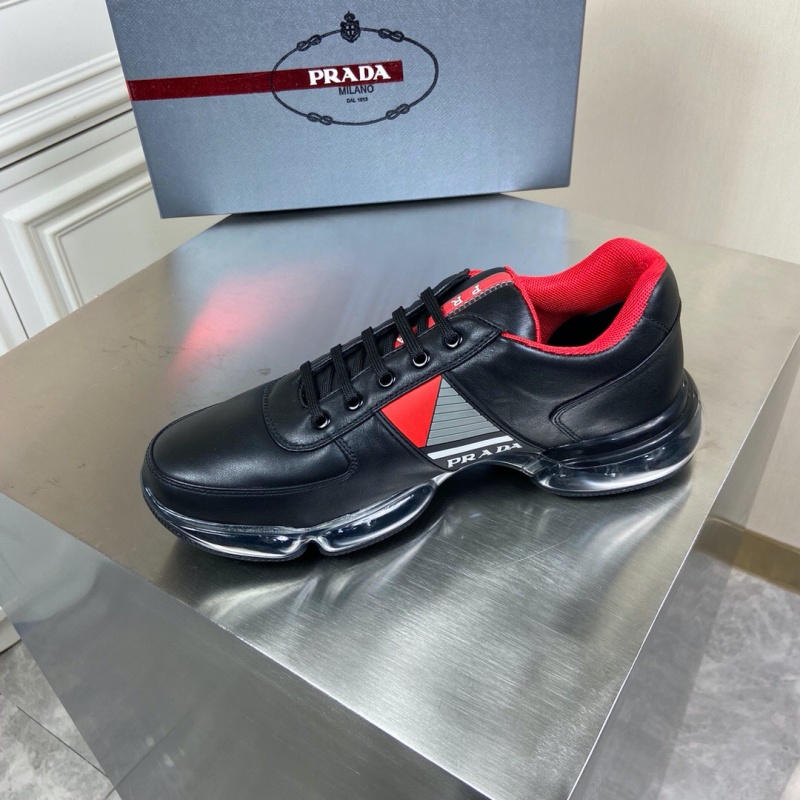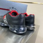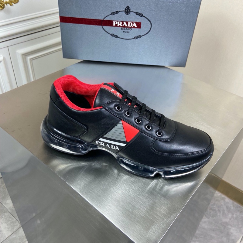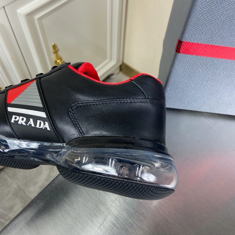 - 4E2718 Prada 织物和皮革运动鞋 普拉达2020新款休闲运动鞋 黑色