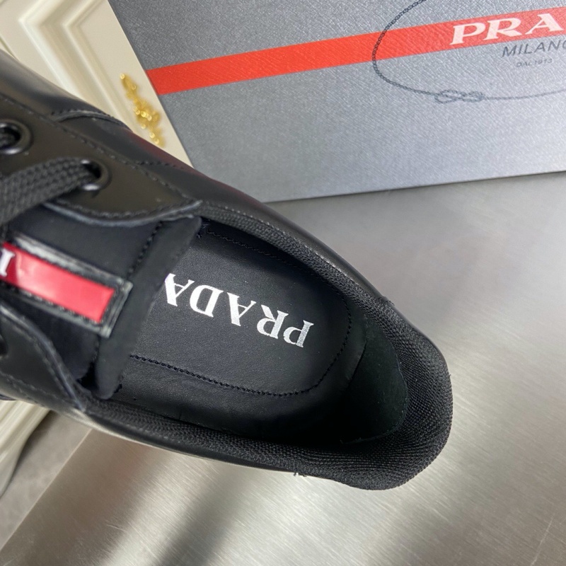 4E3463 Prada皮革和织物运动鞋 普拉达2020新款休闲运动鞋 黑色
