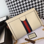 - 详细介绍:Ophidia 系列链条肩背包在 2019 早秋系列中推出全新色彩选择,以织纹白色皮革材质,搭配镶嵌的红蓝条纹织带。挺括造型搭配磁扣设计,典藏双 G 造型配件细节令整款造型更添魅力。