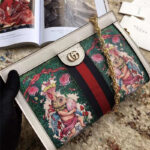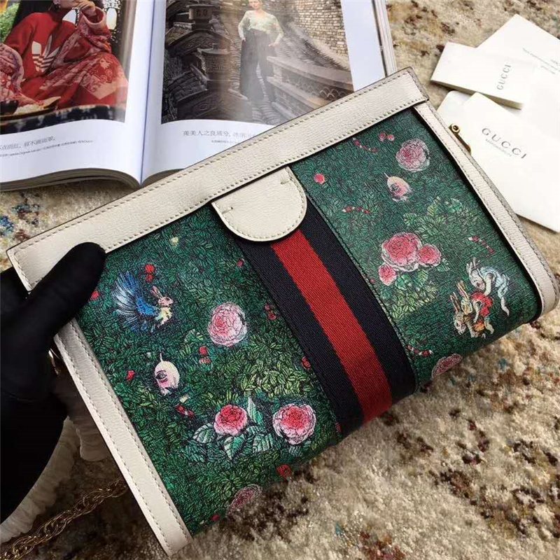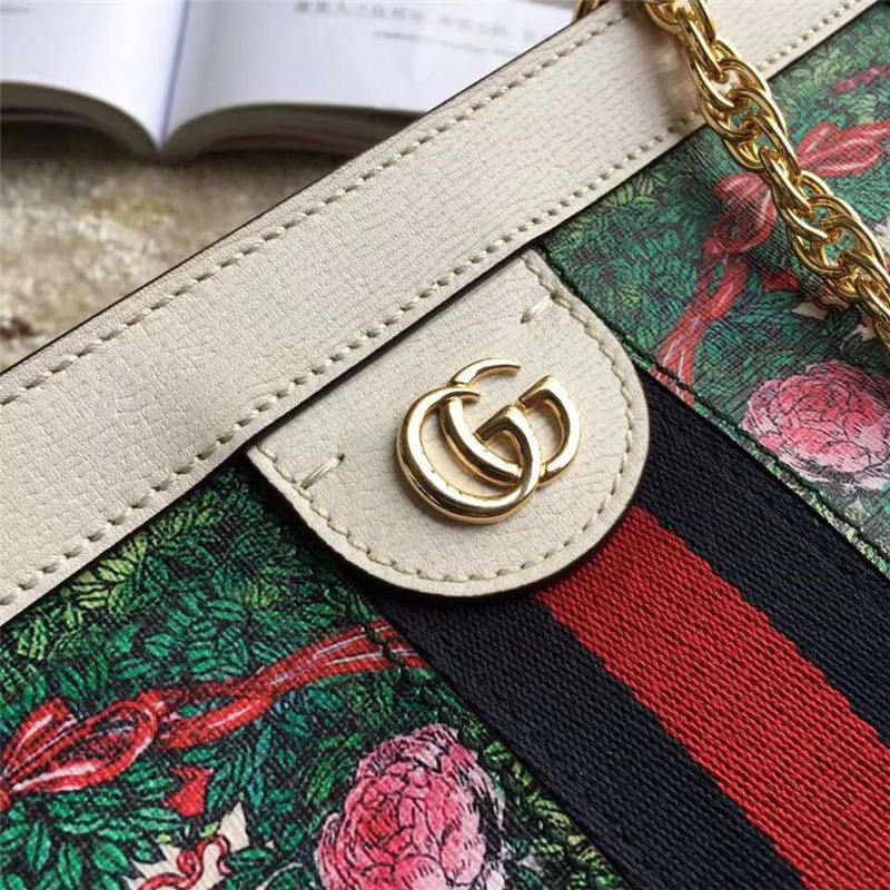 - 503877 Gucci女包 Ophidia系列 条纹织带 复古花鸟印花 古驰链条肩背包 绿色