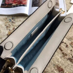 - 结构:磁扣,两个隔层,红蓝织带,金色调配件,链式肩带