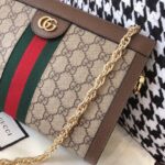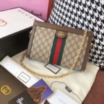 - 503877 Gucci Ophidia系列小号 GG 嵌花条纹织带 链条肩背包 啡棕