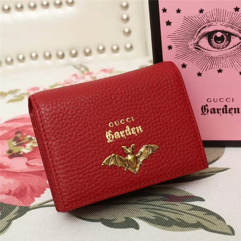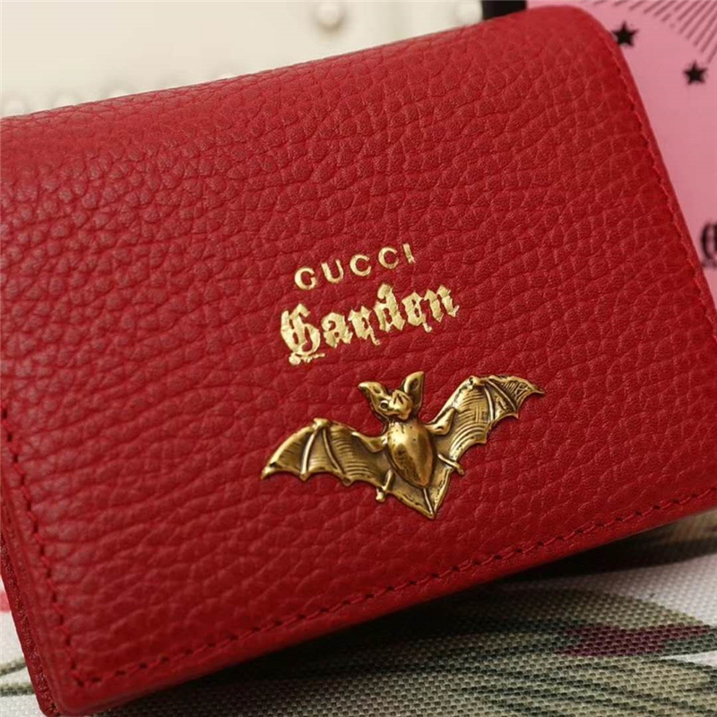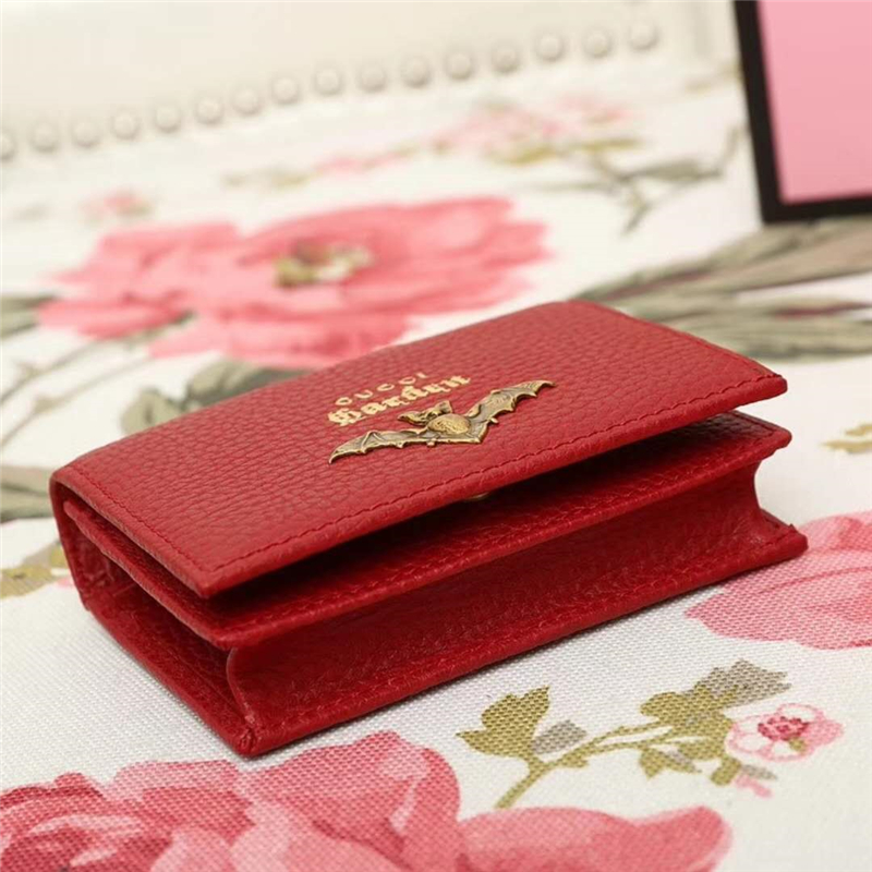 - 516938 古驰钱包 限量版 蝙蝠 烫金标 进口头层皮 红色