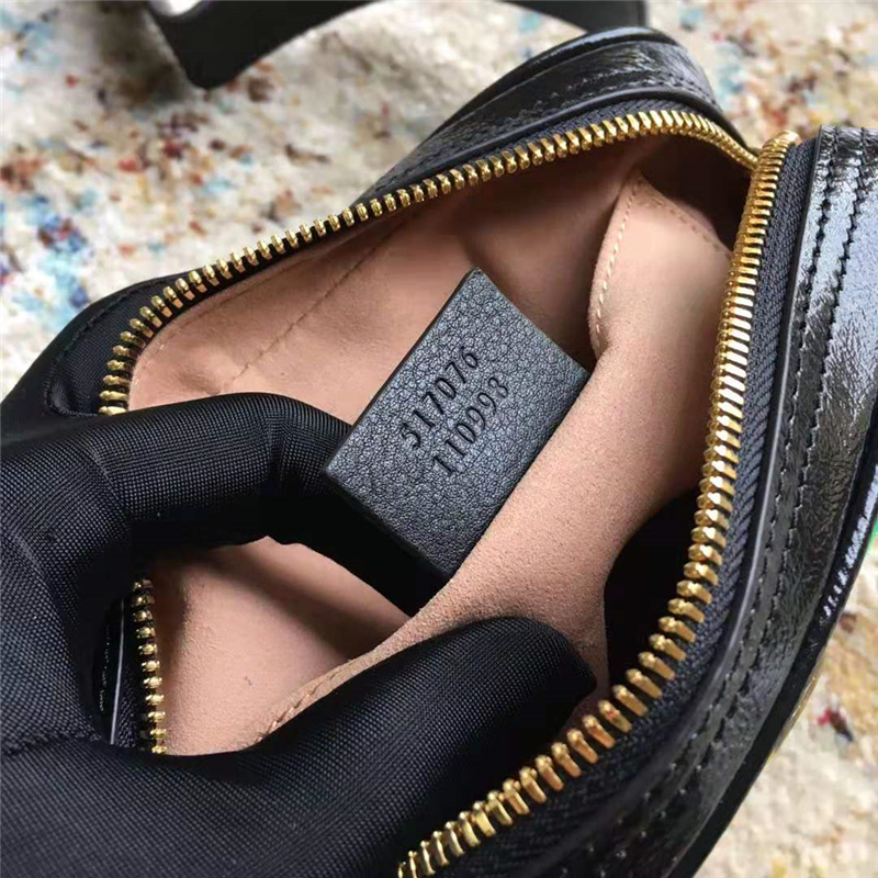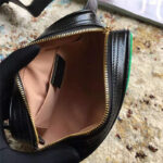 - 结构:麂皮质感超细纤维衬里,上方拉链扣,金色调配件,饰金属双G椭圆形珐琅细节,正面拉链口袋,拉链内袋,可调节腰带固定