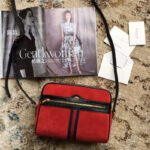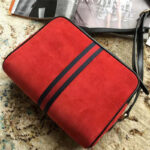 - 结构:麂皮质感超细纤维衬里,红绿织带,上方拉链扣,正面拉链口袋,拉链内袋,可调节肩带