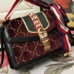 524405 GUCCI Sylvie新款 丝绒拼皮 蝴蝶结织带 单肩女包 枣红色