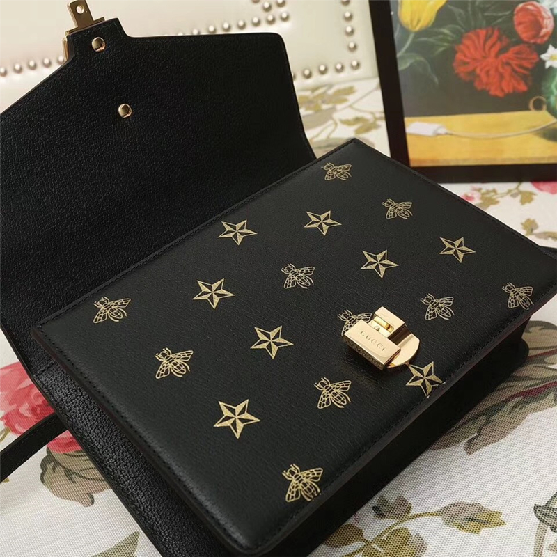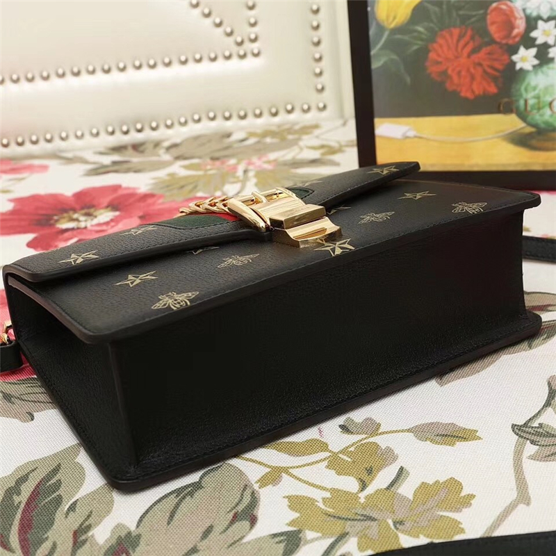 - 524405 Gucci Sylvie系列蜜蜂星星小号肩背包 古驰单肩包 黑色