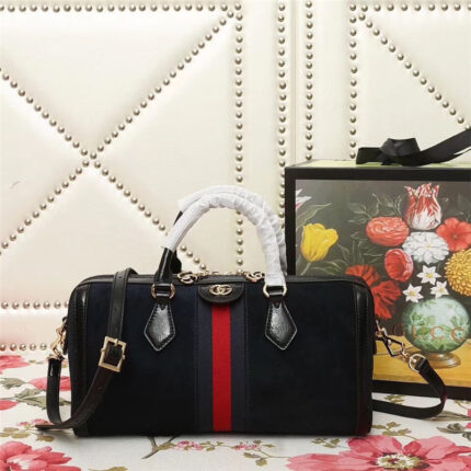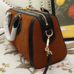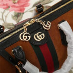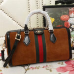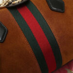 524532 Gucci Ophidia系列 麂皮 条纹织带 GG标识 古驰波士顿手提包 棕色