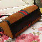 - 524532 Gucci Ophidia系列 麂皮 条纹织带 GG标识 古驰波士顿手提包 棕色