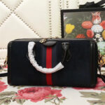 524532 Gucci Ophidia系列 麂皮 红蓝织带 GG标识 古驰波士顿手提包 黑色