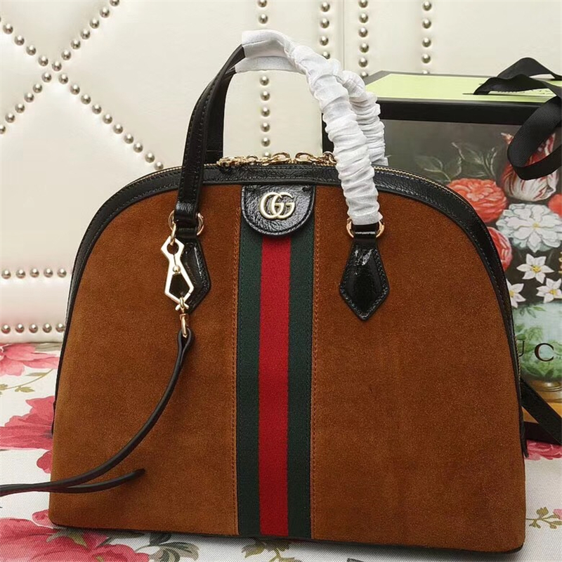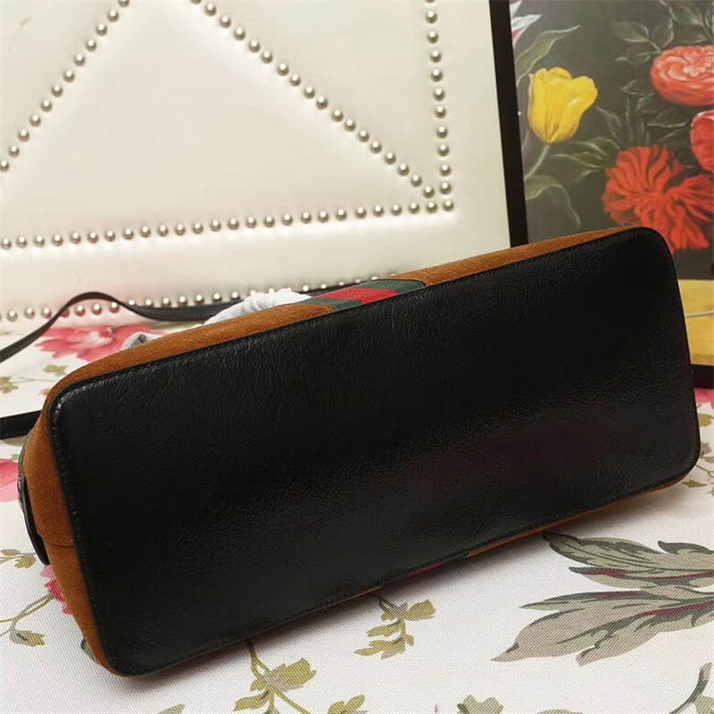 - 524533 Gucci女袋 Ophidia系列 拼皮绒面 红绿织带 古驰经典手提包 啡色
