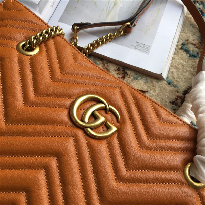 524578 GG Marmont系列 中号 双G 绗缝 购物袋 橘黄色